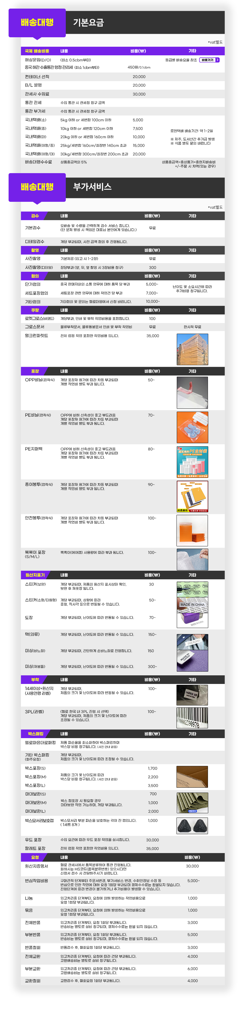 배송대행 요금상세