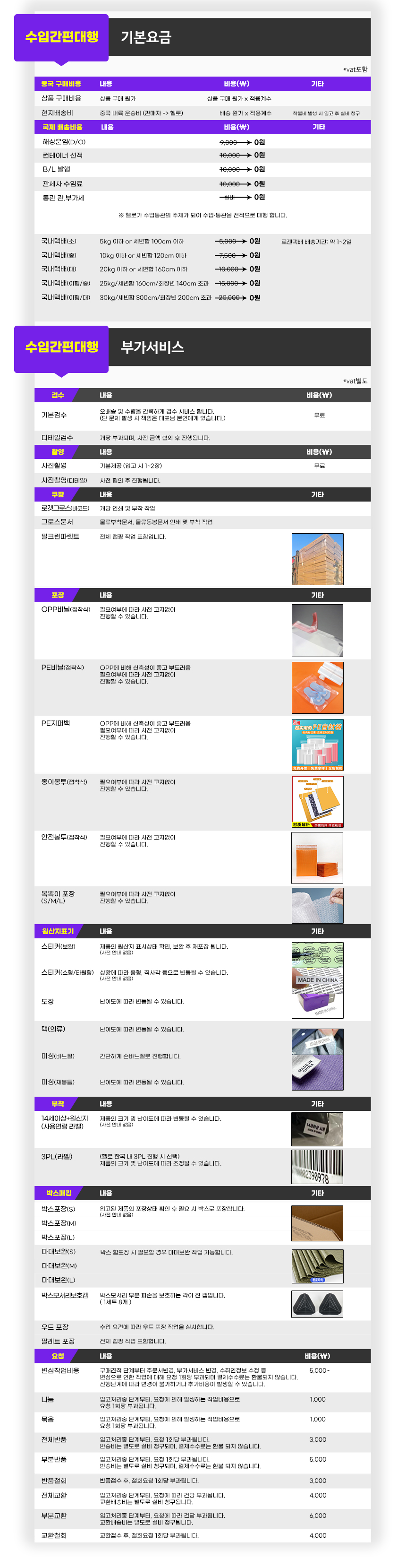 수입간편대행 요금상세